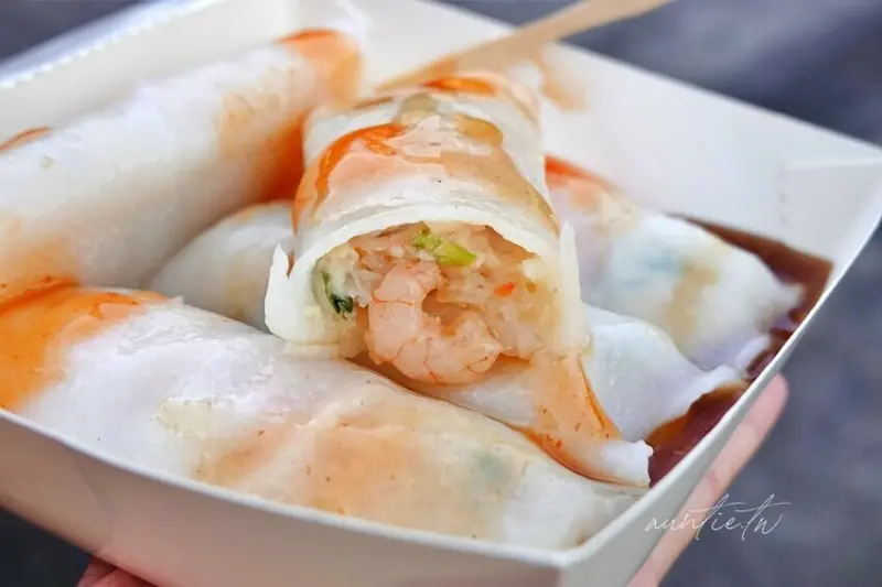 不得不說,賣相真的很好,經過只要老闆打開蒸籠,幾乎路過的遊客都會想接近多看幾眼在賣什麼,假日生意還不錯,嚐嚐鮮各買一盒來吃吃看。個人覺得蝦仁河粉比肉圓好吃,裡頭餡料咬起來還有脆脆的口感,淡淡蝦仁味,味道口感是我蠻喜歡的,不過喜歡重口味的人應該會覺得太淡。<全文介紹>