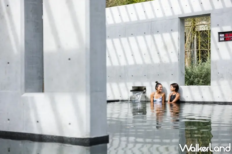 台東紅葉谷綠能溫泉園區由雲品國際攜手台泥企業團所屬台泥綠能,聯手打造。近2.5公頃的溫泉戲水區,設有水療池1池、戲水池1池、溫泉池2池與樹洞遊戲區,泉區入口處運用台泥最新研發的UHPC超高性能混凝土建材,進行迎賓入口的設計,溫泉區採用清水模作為分區規劃,植物景觀栽種了台東原生茄冬樹、常青柏樹、竹林,還有三種不同品種的楓樹,讓初秋到深秋之際都有著不同的地景風情,園區風格簡約且靜謐,能夠細膩地體驗碳酸氫鈉泉的溫泉泉質。![]()