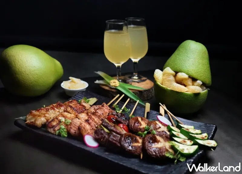 此外,「Bar. Tender八天」另應景推出中秋限定套餐,雙人套餐包含「鹽烤雞腿肉串」、「鹽烤豬五花串」、「鹽烤豬五花串」、「翼板牛肉串」、「烤香菇串」、「烤櫛瓜串」及限定「柚見滿月」調酒。套餐中,雞肉串以細鹽鎖住肉質水份,清酒帶出陣陣香氣,完美火候烤出外酥裡嫩;翼板牛肉串則先以白胡麻油舒肥,一口咬下肉質鮮而多汁、芳香滿溢。