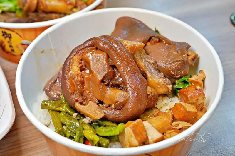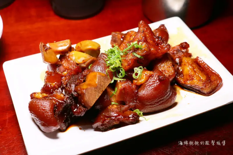 豬腳滷到油油亮亮、深咖啡的色澤Q嫩有彈性的口感,吃起來滿口濃濃的膠質,唇像上了一層護唇膏般油亮滋潤...<全文介紹>