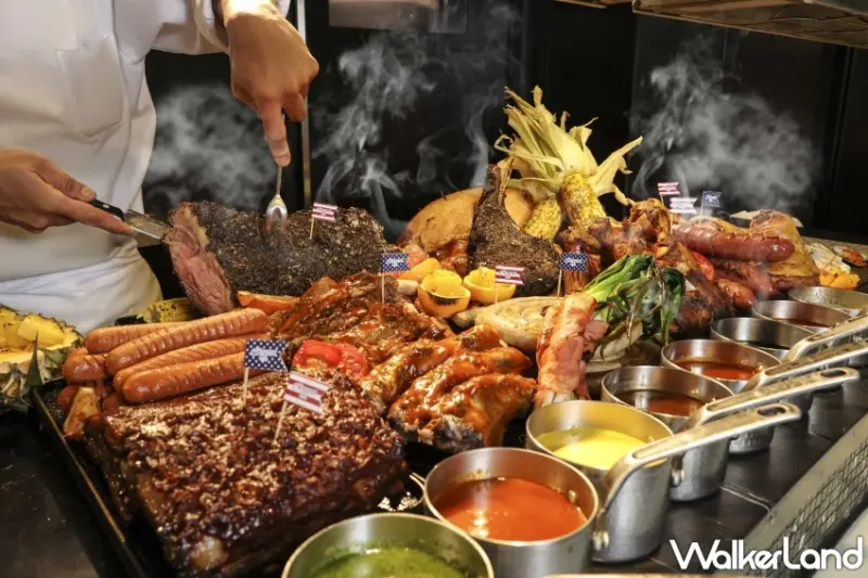 同時,以香料醃漬、帶骨炭烤的堪薩斯城烤全羊腿,皮脆肉嫩,且充滿視覺效果。另一款吸睛的爐烤戰斧牛排則是豪邁大氣、肉香十足。此外,主廚為各式牛、羊、豬排及海陸料理設計的佐餐醬料包括經典美式BBQ醬、黃芥末醬、辛香黑胡椒醬、加州酪梨醬、水牛城辣醬、佛羅里達塔塔醬、德州藍紋乳酪以及墨西哥莎莎醬等8款道地美式烤肉醬汁,美味多元變化。選項豐富的蔬果沙拉配菜區,也為饕客的烤肉大餐加滿營養,席間還提供啤酒暢飲,歡迎肉食主義者呼朋引伴、趁著佳節前來大快朵頤。