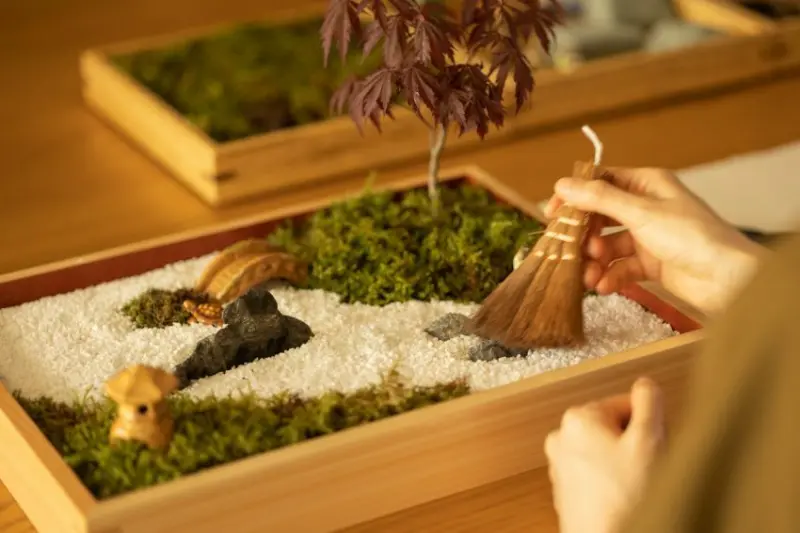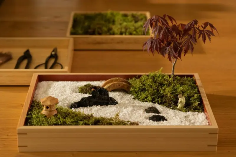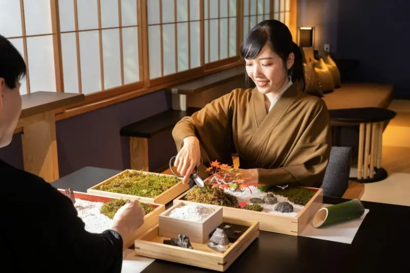此活動將由負責「虹夕諾雅 東京」館內裝飾的盆景設計師勝亦友哉先生親自指導,老師會與遊客分享庭園盆景的歷史、講解製作步驟,帶領挑選盆栽與植栽品項,製作屬於自己的獨特庭園盆景。將土壤放入漆器盒子,並在裝入土壤時塑造出高低差,再種入紅葉與黃葉,調整苔蘚和石頭擺放位置,最後放入白沙,還可使用工具調整苔蘚的長度,或在沙子上畫出紋路,即可製作精緻又美麗的庭園盆景,過程相當放空療癒。![]()