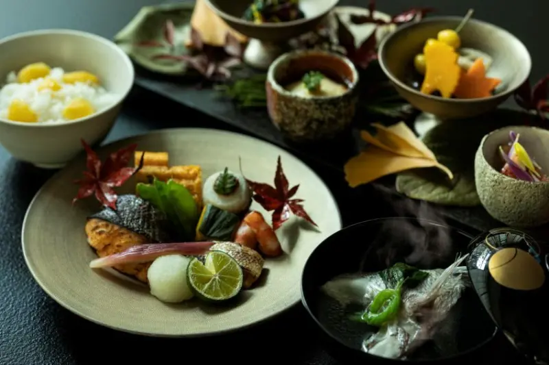 第二天早餐會讓旅客品嚐使用了大量秋天時令的蔬菜和海鮮,包含栗子飯、雜糧沙拉和烤秋鮭。栗子和粟米是江戶時代人們在秋季會食用的食材,除此之外還能飲用紅葉鯛魚湯與其他滋味豐富的當季食材料理,從一道道的美食當中感受濃濃秋季氣息。![]()