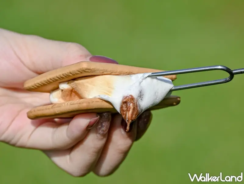 首選零失敗的「BBQ棉花糖烤串」,在烤爐上微微火烤、均勻旋轉受熱,輕鬆就能享受到圓滾滾又微酥的金黃外皮,入口即溶的棉花糖與濃醇巧克力麥芽流心,令人垂涎欲滴。
