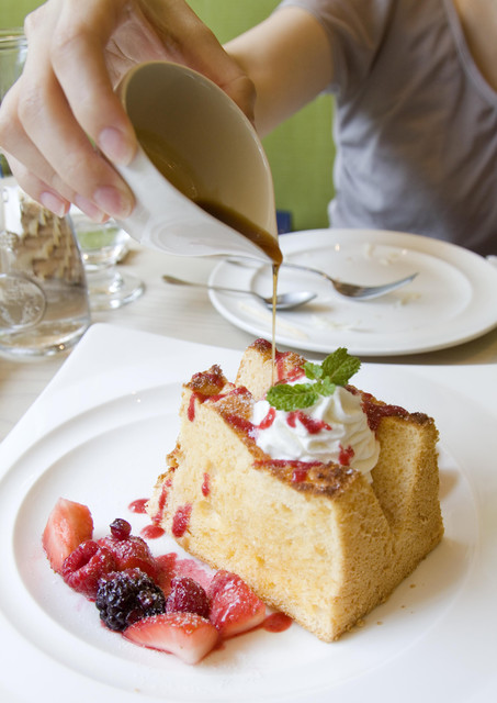 店內有很多以北國動物及玻璃為主體的裝潢,更加營造出主打"粉雪"及北海道冬季的氛圍,綜合莓果戚風蛋糕 $230 - "戚風蛋糕、佐綜合莓果、北海道鮮奶油及楓糖"