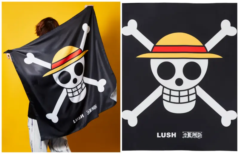 考量到送禮需求,LUSH更是加碼販售「草帽海賊團」圖樣的海盜旗包巾,除了可以當作體面的包裝以外,掛在室內當作裝飾也非常合適,彷彿自己也成為了草帽海賊團的一員。不過限量總是殘酷的,日本LUSH專櫃也規定,沐浴球和起泡塊每個人每種品項一次最多只能購買5個,海盜旗包巾則是以一條為限,想要的朋友們手腳可要快一點,才不會錯過這次的珍貴聯名。
