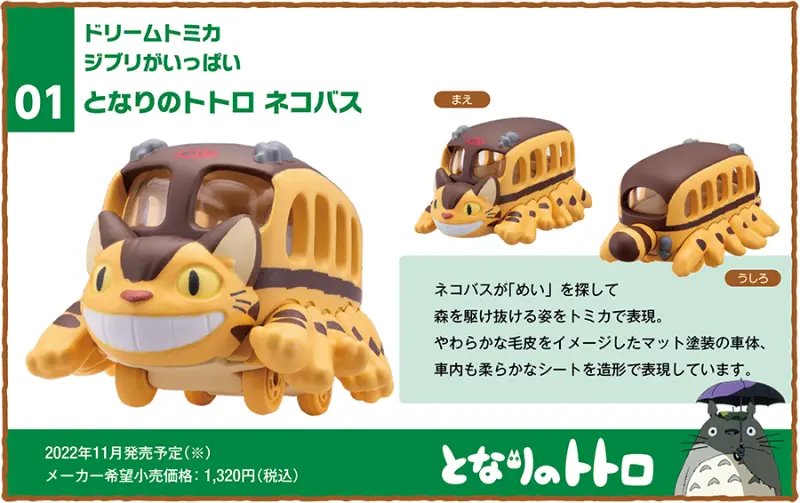 販售日期:2022年11月19日(TAKARA TOMY日本官網、KIDDY LAND、日本橡子共和國、三鷹之森吉卜力美術館內周邊商品店先行於10月15日販售)