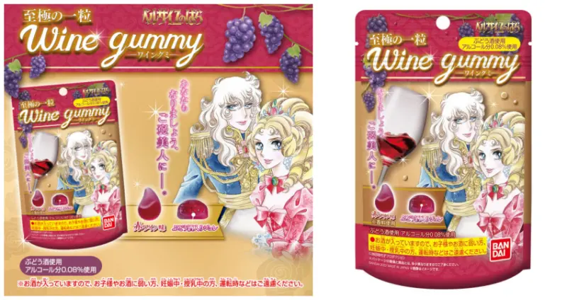 這款由日本萬代BANDAI零食事業部推出的「凡爾賽玫瑰紅酒軟糖」,這幾天在女性網友之間的討論度可說是相當高,這不僅是經常推出兒童零食的萬代,首次為了大人們而推出含酒精的甜點,還與經典的宮廷風少女漫畫《凡爾賽玫瑰》共同聯名,光是看到包裝上印的男裝佳麗「奧斯卡」與一生美麗卻倍受爭議的「瑪莉皇后」插圖,就忍不住覺得質感翻倍、想狂拍好幾張照片放在IG上曬照了。