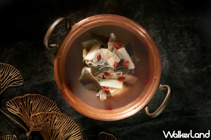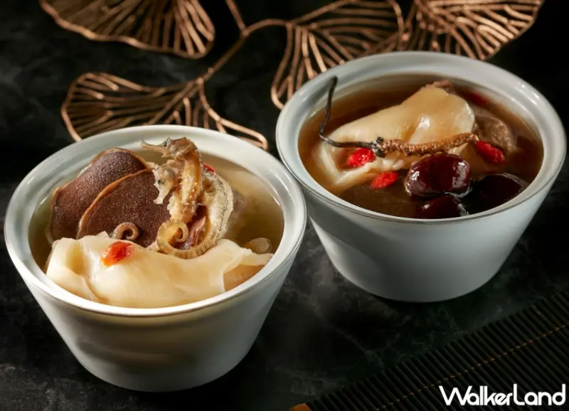 同時,為了讓老饕們更有「頂客」感,特別加碼公開「隱藏版」菜單。首推「龍鳳補湯」,先以老母雞、赤肉、金華火腿等熬煮成上湯,加入含有豐富膠質的花膠、鮮嫩雞腿肉與枸杞,再依性別、體質添補不同的漢方藥材,推薦男性賓客的「龍湯」添入補氣血的鹿茸與海馬,而女性賓客的「鳳湯」則加上紅棗與冬蟲夏草,適合溫補。