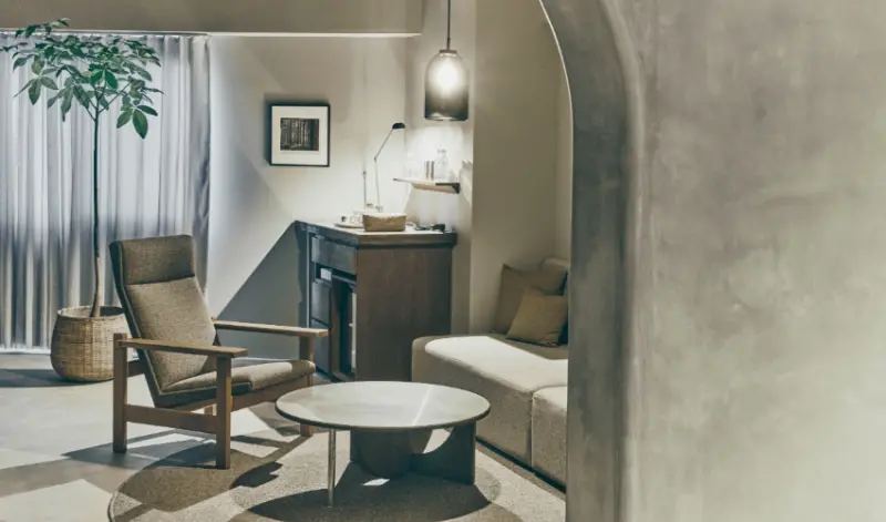 客房內部也設計了拱形元素,並以水泥風的色系為基調,打造簡約洗練的休憩空間,且7-9樓的客房內還設置桑拿設施,讓人在房內就能獨享療癒時光。此外,香林居內還設計了一個可以將光線和聲音完全隔絕的空間,可在此安靜身心,盡情與自己對話,使用需提前預約。
