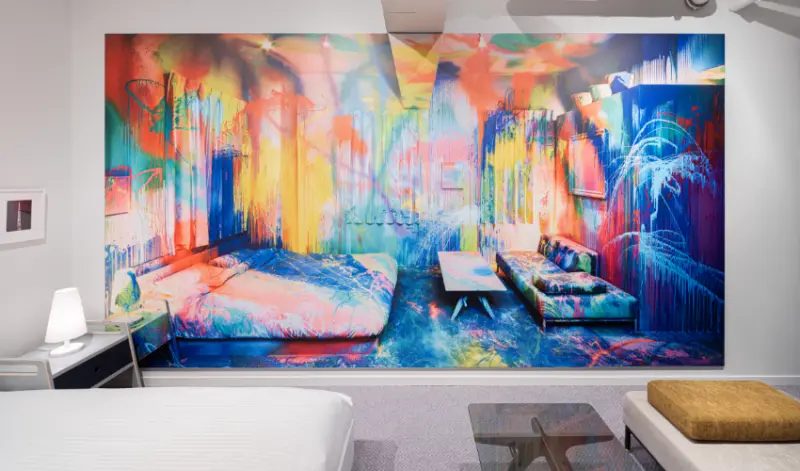 BnA_WALL的客房不是單純的作品展示空間,而是整間客房就是一件大型藝術品,從地板、牆壁到天花板,還有傢俱擺設等,通通都是藝術家們精心挑選佈置,再融入個樣創作,將藝術家的世界觀完整呈現,客房從設計之初到完工歷時約2年,是個工程浩大的藝術企劃。![]()