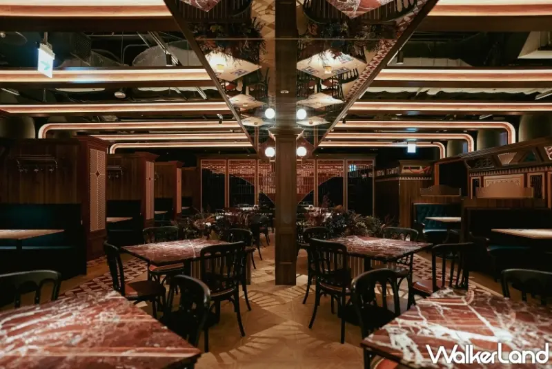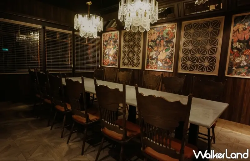除了料理之外,「輪輪1976-和食茶酒駅」整體設計靈感是結合品牌經典火車意象和日本大正時期風格,團隊將這兩個設計元素發揮得淋漓盡致,推進到一個極致的層次。從一走進店內的迎賓吧檯,一入眼簾即是以火車站票亭設計為靈感,彷彿跟隨著「輪輪1976」一起踏上摩登復古美食之旅。