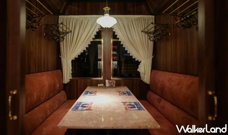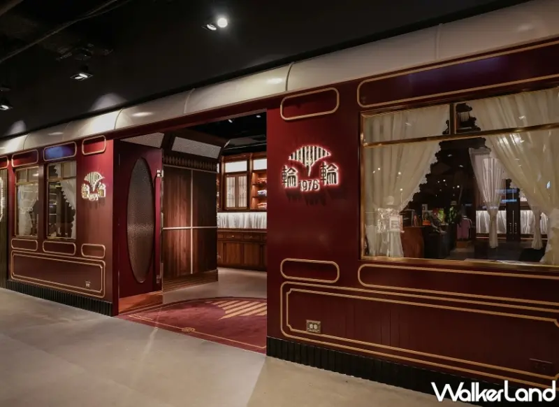同時,為了讓大正浪漫風更為鮮明,車廂內以柔和的黃色燈光營造時代氛圍,讓用餐氛圍營造得更為柔和浪漫 ; 雕刻木椅上則搭配著天鵝絨面觸感的坐墊,不但保留著日式木質溫潤,同時點綴著西方浪漫 ; 鑲崁玻璃、雕花飾板、銅雕造型等,引起一陣大正浪漫風,讓輪輪1976乘風啟程。