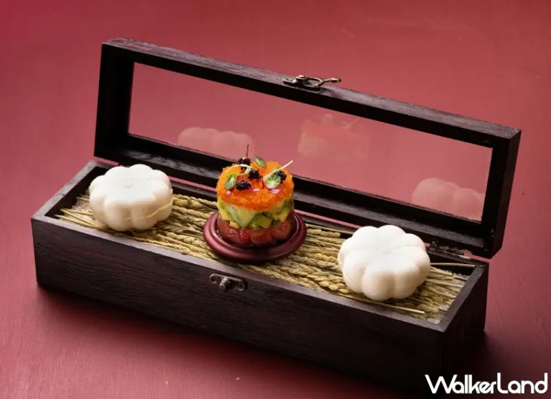 大車輪餐旅事業經營團隊表示,全新品牌「輪輪1976-和食茶酒駅」推出一系列全新跨界和洋食,其中「海鮮酪梨塔最中寶盒」是輪輪1976特製的日式冷菜,以新鮮鮪魚混搭鮮酪梨蟹卵海味塔,佐以和菓子最中餅,做成日式風格新式漢堡 。![]()