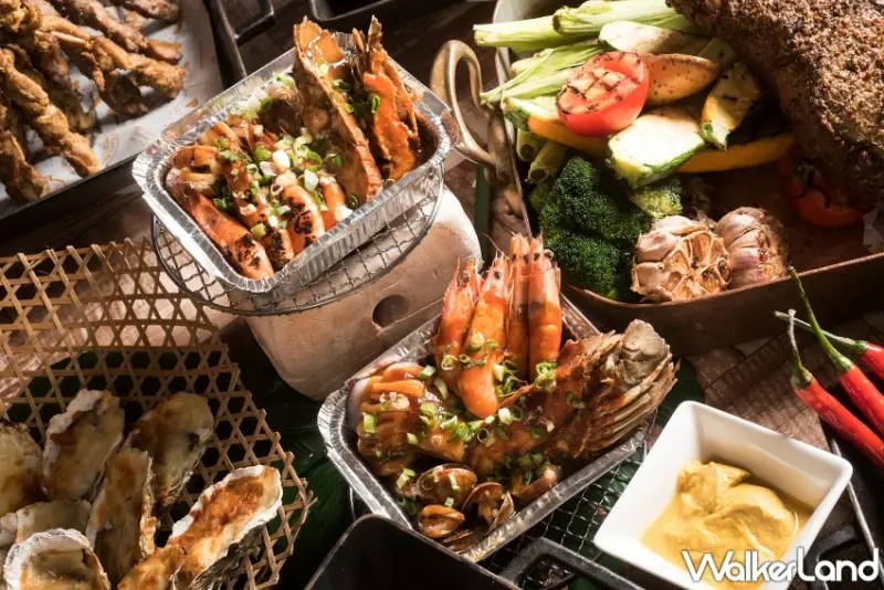 吃到飽控又有新菜可以吃了!台北六福萬怡酒店搶攻吃到飽市場商機,敘日全日餐廳以Glamping美食為概念,推出「海陸燒烤饗宴」主題,自助餐檯端上焗烤鮮蠔、鹽烤香魚、戰斧豬排外,還有蝦蛄尾、草蝦、透抽、花蛤等綜合海鮮錫盒燒烤,主廚更準備各種烤串及調料,搭配出百種串燒組合,還有專人到桌邊服務的鹽焗紐奧良香料鮭魚,再加上烤肉必備的柏克金啤酒暢飲,就是要讓吃到飽控吃到不想回家。![]()