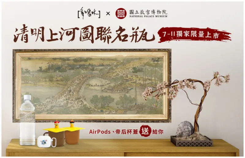 配合故宮博物院10月院慶,多喝水450ml故宮清明上河圖聯名瓶,10月5日起於7-11獨家販售(數量有限售完為止),11月1日前推出限時2件8折、3件77折的活動,且可至多喝水粉絲團貼文參加活動,上傳包裝照片就有機會抽中AirPods(含故宮精品保護套),還有超實用兼具趣味的帝后杯蓋(清高宗乾隆及清慧賢皇貴妃,一組)。活動詳情請關注[多喝水] Facebook,獲得最新資訊https://zh-tw.facebook.com/morewaterofficial/