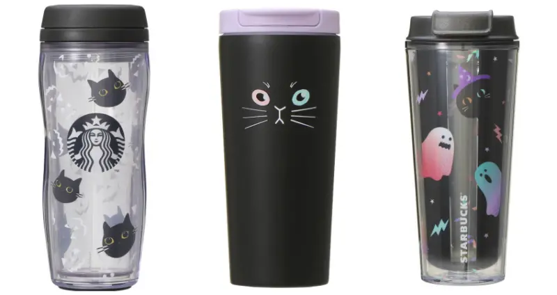2022年萬聖節主打款商品絕對就是超特別的「異色瞳貓咪不銹鋼保溫杯」,沉穩的消光黑瓶身相當低調簡約,僅印上了貓咪的臉龐,最大亮點就是貓咪一粉一藍的眼瞳,是貓奴絕對必敗商品之一;另外還有印著「黑貓與南瓜邪惡笑臉」與「七彩幽靈」兩款透明隨身瓶都十分俏皮,全都是日本星巴克才能買到的限定版商品。
