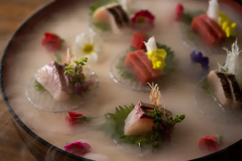 入住Villa Ryusei最讓人期待的就是無菜單會席料理,每天嚴選美食寶庫之地伊勢志摩孕育的當季地產食材入菜,從味覺上的美味到視覺上的食物擺盤,能同時滿足多重感官享受,像是前菜的生魚片便是取之英虞灣上漂浮的島嶼群而來的靈感。雖然是無菜單但保證提供一人一隻伊勢龍蝦、活鮑魚,客人也可以選擇自己喜愛的調理方式,提供超乎客人想像、令人感動的無菜單料理。