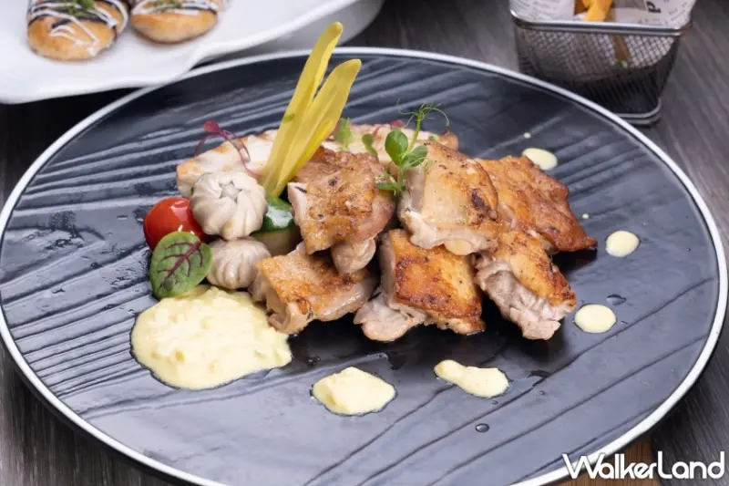 至於熱食區也有各式風味菜,包括以迷迭香加上萊姆醃製後再煎烤的「魁北克迷迭香雞」,金黃色酥脆外皮,肉質特別軟嫩,再佐上特調奶油醬,別具風味;「伊士班諾燴羊膝」挑選膠質豐富的膝蓋部位,飽滿吸附以蕃茄等蔬果加上百里香及紅酒燉熬的醬汁,香氣逼人;主廚再推薦「烤香料帶骨牛小排」則選用特選帶骨牛小排,芥茉香草醃漬再烘烤,肉甜且多汁。