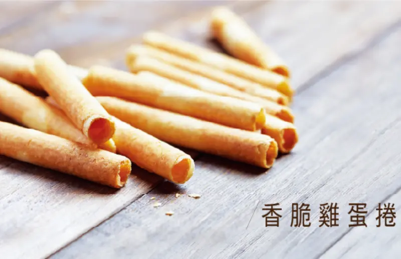 至於香脆雞蛋捲肯定是老少咸宜都喜愛的最佳口味。雞蛋捲早在唐朝已有記載,選用上等麵粉、新鮮雞蛋及進口奶油,以獨特工法製成薄燒口感,入口香脆鬆化,蛋味香濃,極具家鄉風味。