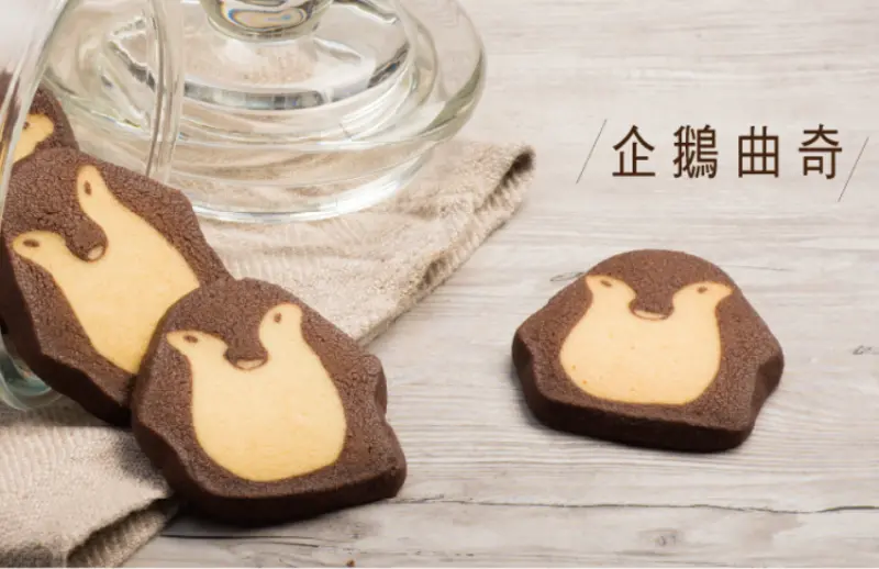 如果是要送給有小孩的親朋好友們,那麼企鵝曲奇非常適合。選用紐西蘭奶油拌入迷人的香草風味,再以誘人的巧克力勾勒出一個個可愛的小動物,口感香脆鬆化,是大人小朋友們都愛的療癒點心。