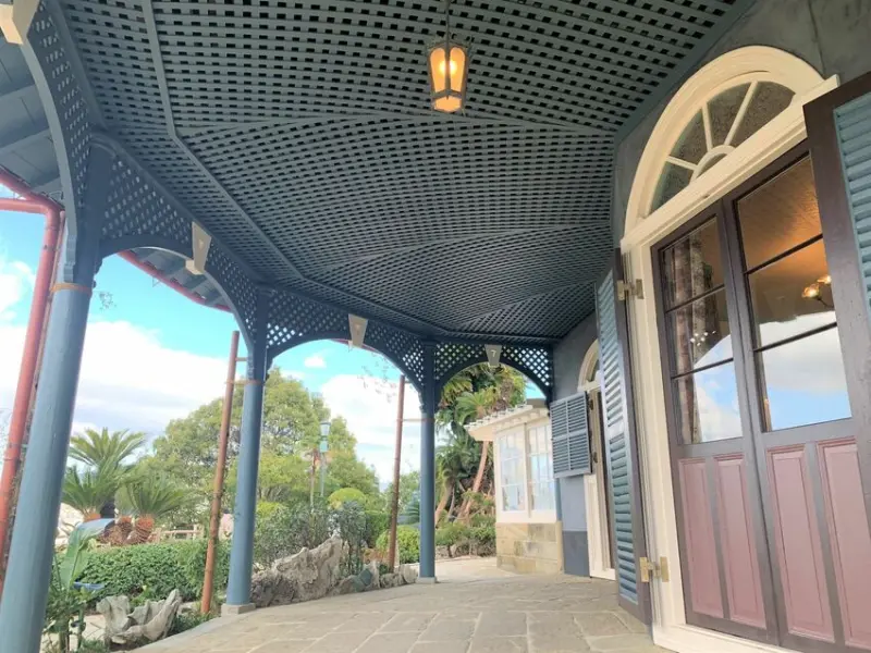 位於南山手山坡上的哥拉巴園內保存了6棟明治時期的西洋建築,從這裡俯瞰長崎港的視野十分遼闊,彷若西洋庭園的異國風情是吸引遊客的特色之一。園區內的「舊哥拉巴宅邸」為日本現存最古老的木造洋房,同時也是世界遺產。2019年1月起進行了將近3年的整修工程,終於在2021年11月完工重新開放,包括屋頂、外觀及屋內展示全部煥然一新。![]()