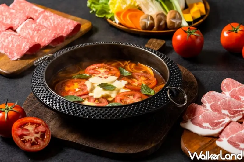 MO-MO-PARADISE推出期間限定「瑪格麗特鍋」,靈感源自義式經典菜色「瑪格麗特比薩」,以秘製醬汁為基底,融合新鮮牛番茄與洋蔥,在高溫煮滾後完整釋放番茄中的天然谷氨酸,令湯底更添鮮美甘醇,番茄中的果酸亦可中和脂肪,幫助肉類油脂分解,在涮煮肉片時可大幅降低油脂浮末,清爽無負擔。