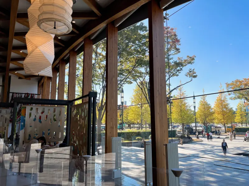這間重視環保與回收的特色門市,全店不提供紙杯和紙本菜單,你可以用數位菜單點完想要的食品,在店內用馬克杯享用各種飲品,或是使用回收杯外帶,在飲用完之後到丸之內區域指定的店鋪歸還,附近宜人的自然景色也非常值得駐足停留拍照。