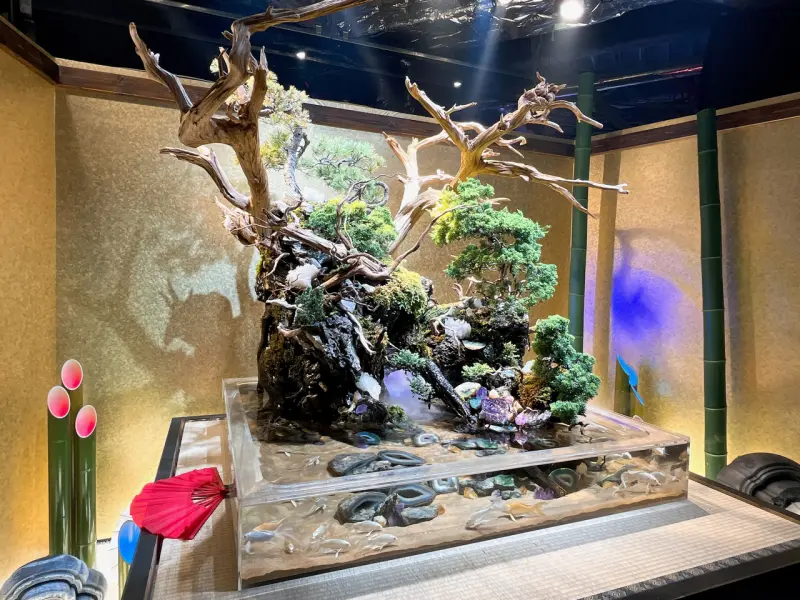 館內共有80種魚類、合計約800隻魚兒穿梭在各式各樣的水族箱當中,其中「龍宮」更是以漂流木、大型水槽打造出一片彷彿海底仙境的神祕地帶,「金魚區」還有互動式的光影撈金魚體驗,絕對是下次來到東京時不可錯過的極美新景點。