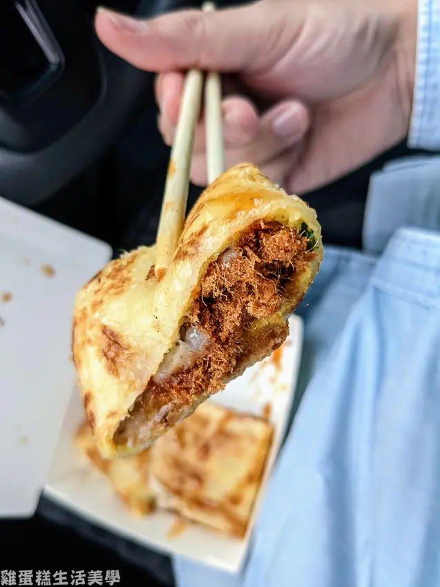 多了肉鬆的薯泥蛋餅口感更有層次,他們的蛋餅皮較厚較像抓餅的口感,很喜歡他們超酥的餅皮。<全文介紹>