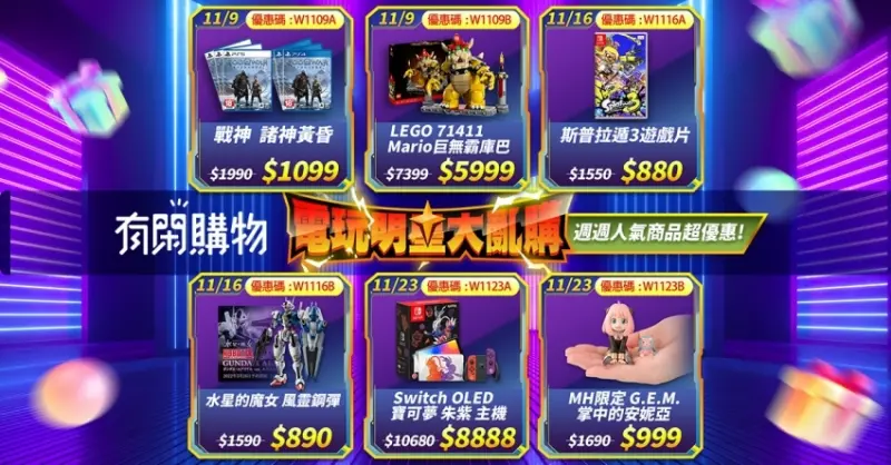 Gamania 橘子集團旗下有閑購物雙11祭出多項折扣、限定驚喜活動,優惠不斷!其中最吸睛的就是「你按讚我降價」活動,PS5主機、巨大哥吉拉最低有機會下殺只要1元,喜愛電玩、玩具商品的朋友千萬不要錯過這波降價活動,一起為喜愛的商品按讚降價。![]()
