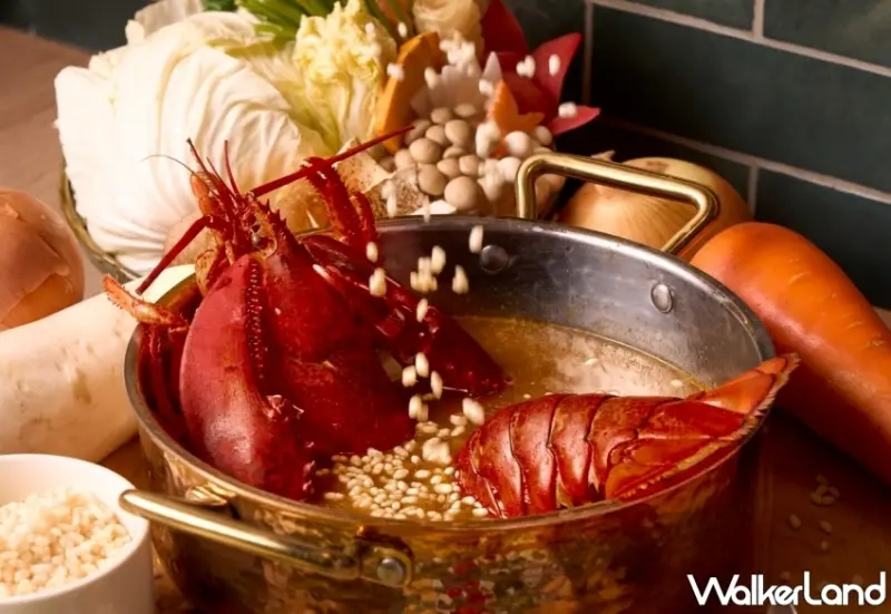 此外,湯頭也是鍋物不能忽略的重要靈魂,主廚悉心熬製兩款風味湯頭來突顯口感層次,除了有鮮甜甘美以龍蝦為基底的高湯,還有使用擁有「餐桌上的鑽石」美名的黑松露創新搭配營養燕麥奶,入口香氣濃郁、鹹香夠味,涮入海陸食材交織出完美驚艷好滋味,最後安排龍蝦泡飯桌邊服務,將炸米倒入鍋中與湯汁精華熬煮,讓此鍋宴擁有完美結尾。
