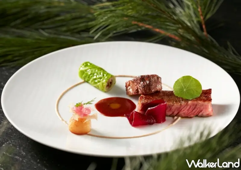 此外,針對懂吃的老饕,一定不會錯過日本A5和牛肋眼,選用有著大理石紋油花的日本A5和牛肋眼,炙烤後外酥內嫩,油脂豐厚綿密,頂級滋味在舌尖騷動,先品嚐頂級和牛的本色演出,再搭佐Gravy、五葉松油、蓮藕、皺葉甘藍、甜菜根等豐饒的大地滋味,平衡味蕾。