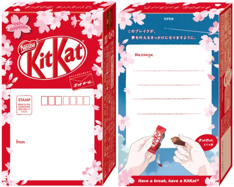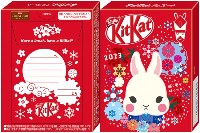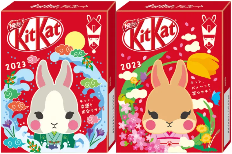 為了迎接新的一年的來臨,特別以2023年的兔年為主題設計了附小紅包袋造型的KitKat包裝,封面為身穿日式傳統新年服飾的兔子,共有3款不同造型的喜氣兔子;背面的部分則為小紅包袋的造型,並且設計了可書寫留言的欄位,讓購買者可自由書寫新年祝福、加油鼓勵等,雖然不是真的新年紅包,但依然能傳遞新年的祝福。