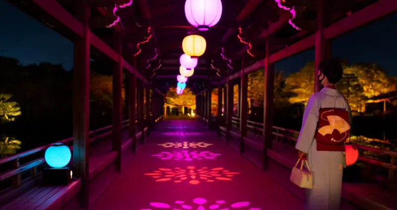 NAKED YORU MO-DE為日本創意藝術團隊NAKED打造的嶄新夜間參拜模式,除了平安神宮外,2021年的夏季在日本三大稻荷神社之一的「豐川稻荷神社」、2022年的春季在東京「神田明神」等都舉行過「NAKED YORU MO-DE」,透過藝術團隊的創意與科技加持,讓平時無法在夜間參訪的神社換上夢幻新裝,帶給遊客全新的夜間參拜體驗。![]()