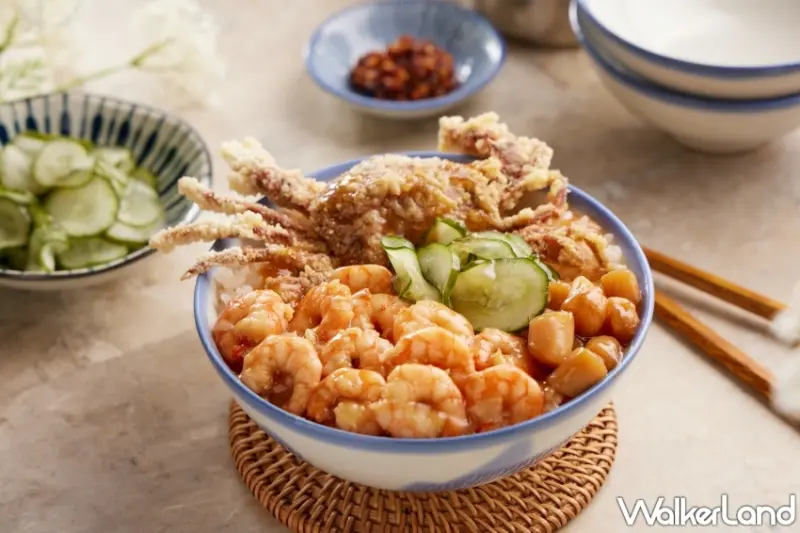 還有忠青必點的蝦炊飯再升級,熱呼炊飯上鋪滿清甜蝦人、十足海味的珠貝,以及整隻炸得酥脆的軟殼蟹爬進碗中,淋上干貝與蝦仁一起煮製的鮮味蝦醬,海洋精華就濃縮在這一碗「軟腳蟹蝦炊飯」之中。中間點綴的「秘製小黃瓜」更是畫龍點睛,酸甜脆的微妙滋味,讓你味蕾更上一個層次。