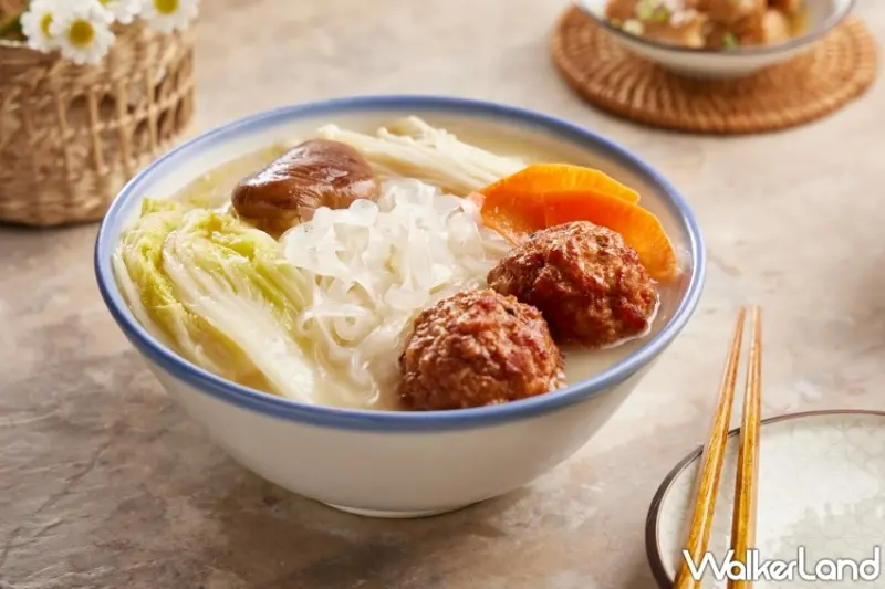 而「濃厚雞白湯」是江浙菜做改良而成,湯底以雞肉、雞骨、豬骨數小時大火熬煉,更特別加入豬皮增加膠質,淬鍊出的一碗溫潤醇厚的濃厚雞白湯;而靈魂主角「獅子頭」製作時特別加入板豆腐,增加口感、降低負擔,滿足食慾再也不用算熱量!除了獅子頭外,還有絕世配角:娃娃菜、香菇、金針菇、紅蘿蔔片,以及清爽順口的寬冬粉,個人用餐也能輕鬆享受中式大菜。