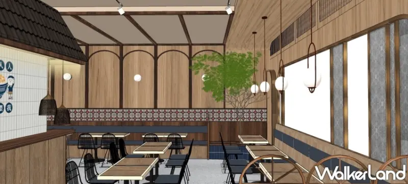 將於11/18開慕的「忠青商行 新莊宏匯店」店裝方面延續一貫的品牌風格,將五、六零年代的懷舊元素搬進店中店,例如:綠植、招牌小燈箱、黑屋瓦、藤編椅、撞色花磚、毛玻璃木櫃…等,就像回到樹下乘涼用餐、遠處飄來飯菜香的美好年代。