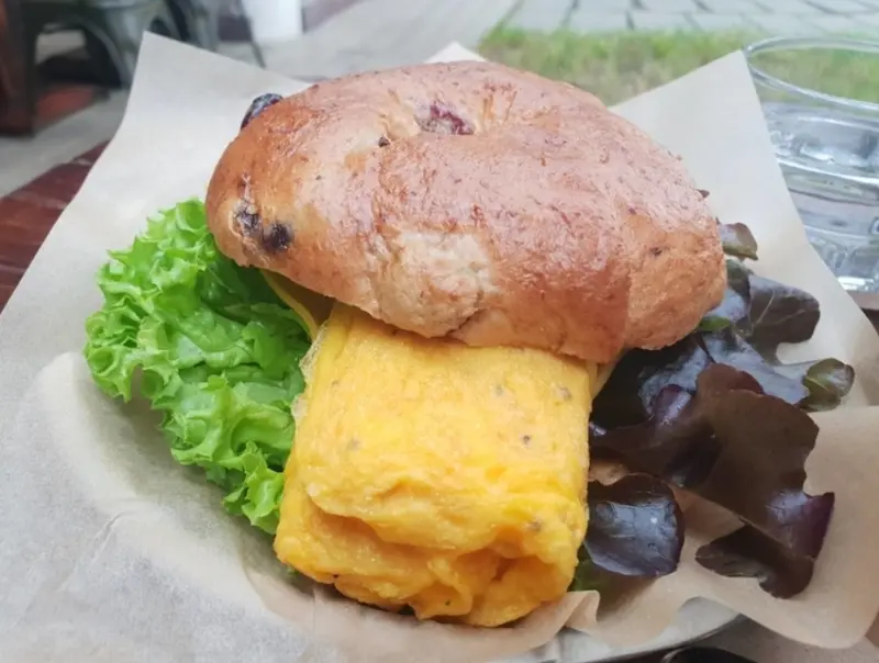 以韓式泡菜、炒豬肉為餡料,爽脆酸香又微辣的韓試泡菜,搭配軟嫩醇厚的鮮香豬肉,搭配雞蛋貝果,紮實又具嚼勁的貝果口感,散發出新鮮的蛋香氣息…<全文介紹>