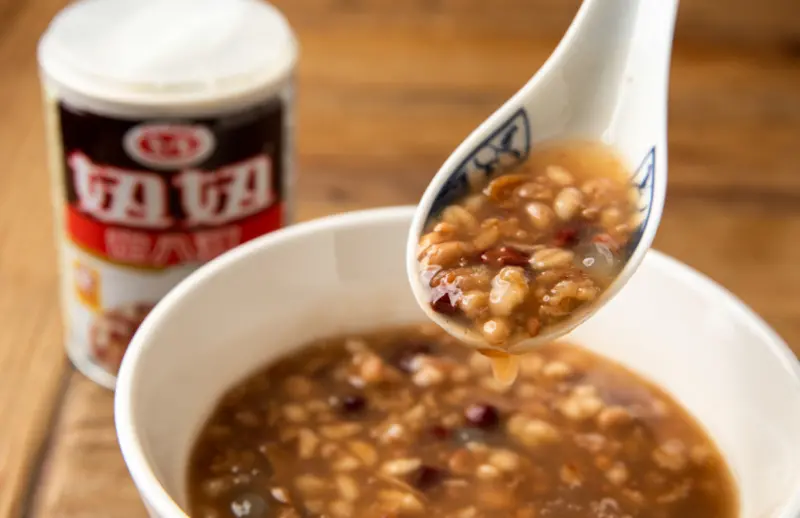以傳統慢燉工法熬煮,搭配糯米、大麥、紅豆、花生、桂圓、薏仁、栗子、白木耳等12種富含豐富營養的天然食物以及特選甘蔗糖漿,如此豐富的配料、甜而不膩,難怪讓人每一口都滿足。