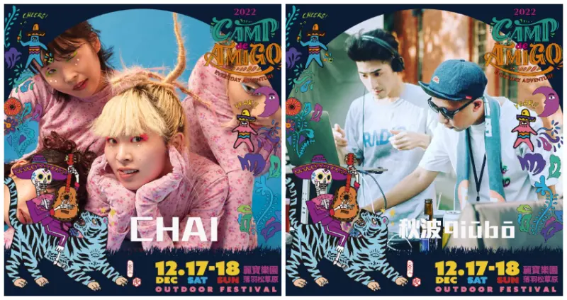 誰說可愛只能有一個模樣?由雙胞胎姐妹Mana和Kana以及貝斯 Yuuki和鼓手Yuna 組成的四人樂團 CHAI,以特異的形象與不按牌理出牌的驚喜,混合 Punk、Power indie pop、New wave乃至電子舞曲等曲風,擄獲海內外諸多樂迷,睽違許久的台灣演出就獻給了 Camp de Amigo,就等你親臨體驗可愛的CHAI讓人瞬間被圈粉的舞台魅力!想Chill一下的話,今年也再度邀請到秋波qiūbō與各位舞眾們繼續共享美好的香汗時光,等不及在年末冬日的舒爽時節跟著秋波輕鬆愜意的選曲一起同樂。![]()