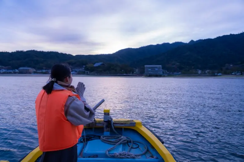 登上漁民用來捕牡蠣的漁船遊覽,近距離觀賞用10公尺超高電纜,將蚵串從海中拉起的壯觀景象;接著就可前往世界遺產嚴島神社的大鳥居前,在船上進行海上參拜。最後,一同享用牡蠣烹調的美味佳餚,為行程畫下完美句點。