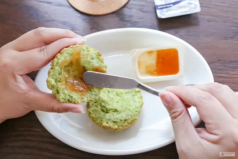 司康絕對是店裡的招牌必點之一,當天有三種口味,抹茶控的我當然就是點抹茶司康啦!上面還有珍珠糖點綴,看起來超級可愛的啦!!一旁附有奶油及柑橘果醬,可以搭配著享用...<全文介紹>