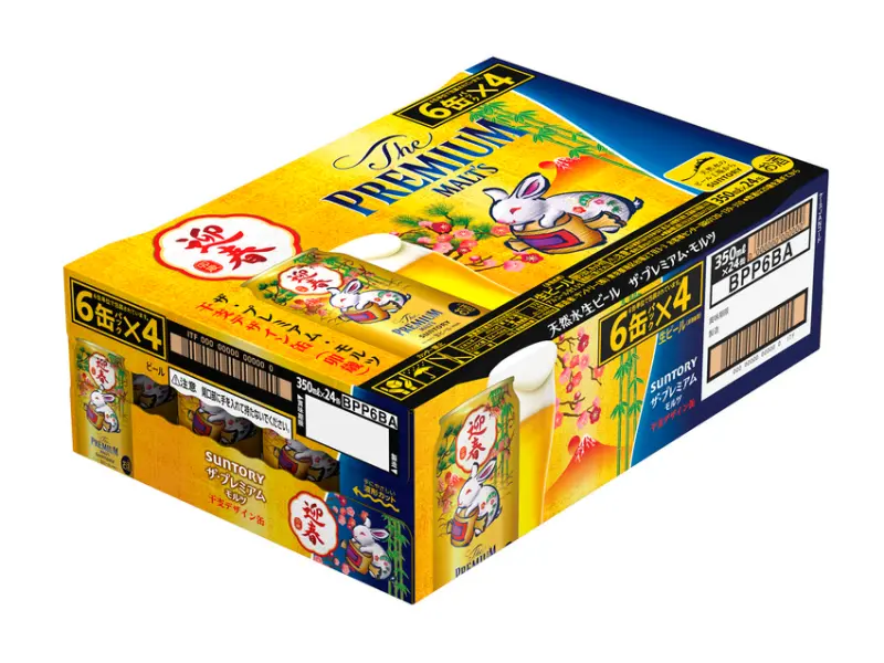 除此之外,三得利頂級啤酒The PREMIUM MALT'S的6入與盒裝同樣也印上了生動的兔子圖案,不管是在家和另一半、好友聚會,或是當成新年賀禮贈送都相當合適,立刻就成為眾人拍照打卡的新寵兒。