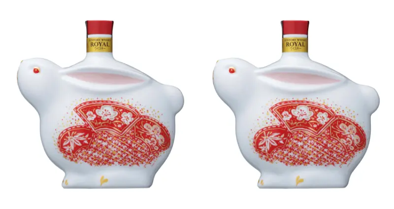 由於兔子在日本古代被譽為傳達好消息的神獸,同時也帶有「大大飛躍」的正向意義,三得利皇家威士忌以往的生肖限定系列都會直接將瓶身設計成動物的體型,這次同樣也不例外,將長耳兔完美還原成陶瓷瓶身,佐以質感超群的釉彩塗裝,放在家中當擺飾或贈禮,都帶有吉祥祝福的珍貴涵義。