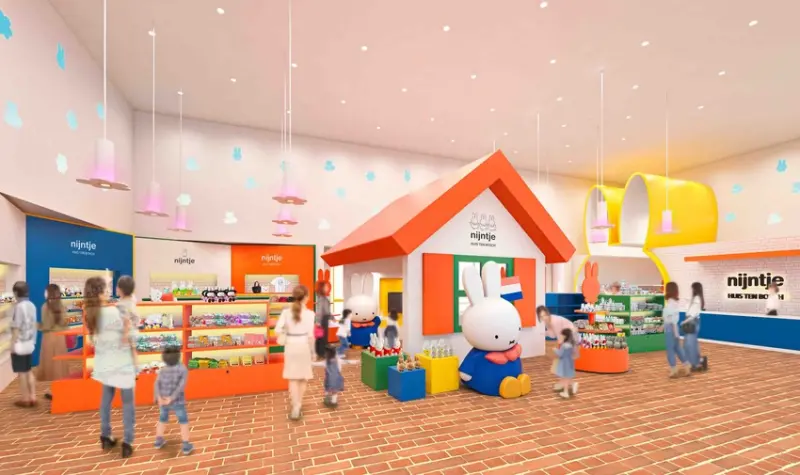 而位於豪斯登堡的「Nijntje」(荷蘭語小兔子的意思),規模是全世界最大的米飛兔專賣店,集結了體驗型周邊商店「Dick Bruna Shop Nijntje」與主題餐廳「Nijntje Cafe」,歷經整修翻修後,確定於12月1日重新開幕,不僅規模比以往更加壯觀,餐點也可愛到讓人捨不得吃下肚,就是要讓米飛兔的粉絲們來到此地被繪本般的世界吸引到流連忘返。