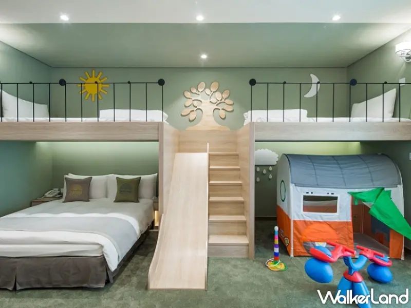此外,以日式莊園為主題所打造的「宜蘭綠舞國際觀光飯店」,不僅可沉浸在綠意盎然的自然景觀,還有可愛的萌寵體驗、忍者體驗、遊湖體驗、DIY手作等寓教於樂活動,是許多爸媽心中最佳的親子飯店口袋名單;「天成文旅-繪日之丘」擁有小朋友最愛的溜滑梯親子房、獨立車庫房及豪華家庭房,滿足一家人出去玩的住房需求外,還有供應零食餅乾、童樂室及碰碰車等設施服務,營造具有歡樂童趣的旅遊回憶,眾多特色獲得網友支持。