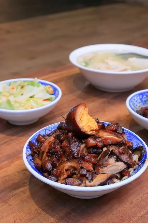 滷得黑金閃亮的滷肉一入口就化掉的香甜帶點焦香氣,配上香菇獨特的香氣,再來一口浸潤醬汁的白米飯濕潤而粒粒分明,整體口感清爽不膩口,最後嘴上還彌留略黏嘴的膠質,好吃。<全文介紹>
