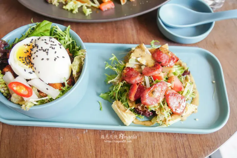 這裡的肉燥飯擺盤很完美,帶有瓜子肉的肉燥味道鹹重,拌飯吃很夠味。一旁還附有香腸生菜沙拉,可以適時中和嘴裡肉燥的重味道。沒想到肉燥飯在這裡是閃耀的主角,還不錯吃。<全文介紹>