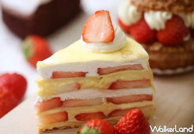 草莓季 草莓千層蛋糕 七吋1580元、切片215元
